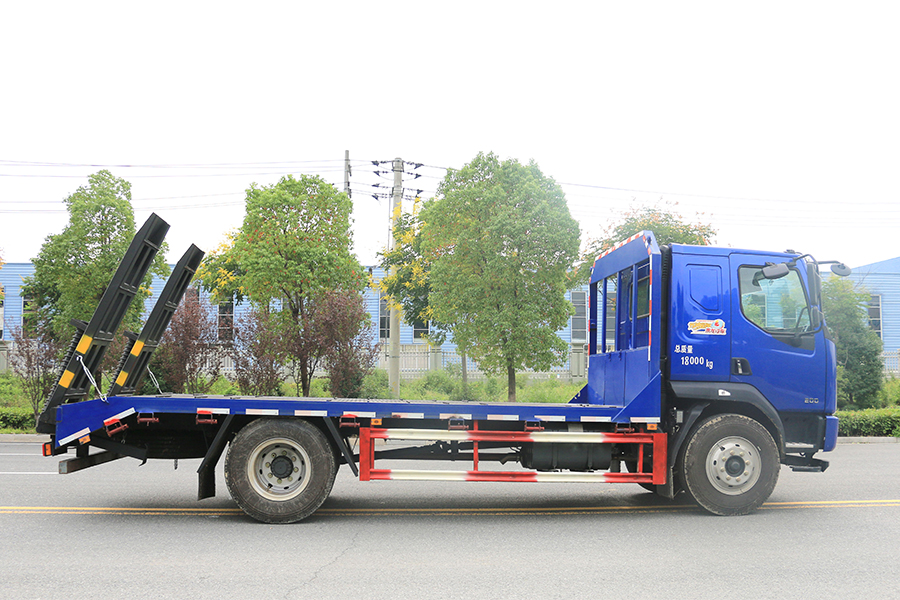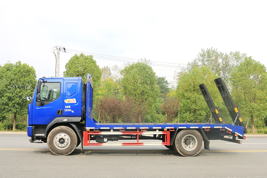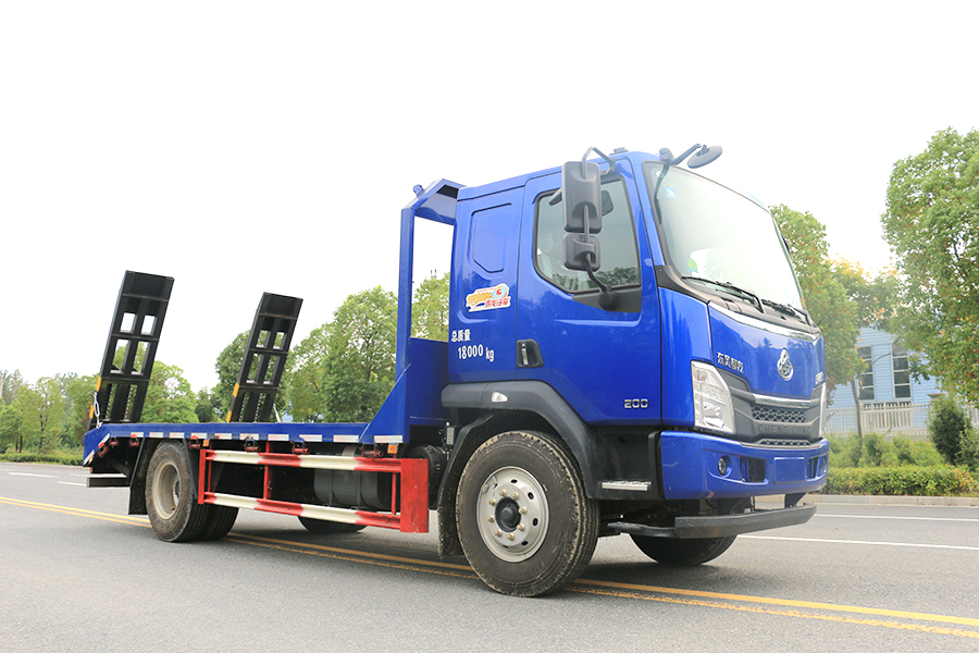 平板運輸車又名為工程機械運輸車、平板車、低平板運輸車,主要用于運輸一些像挖掘機,裝載機,收割機一樣的不可拆卸物體。平板運輸車是生活中常見的大型載重貨車,這種車一般被廣泛用于工廠,工地等大型生產(chǎn)或工程所在地,平板運輸車的承重能力強的特點使其在經(jīng)濟發(fā)展過程中起了重要作用。