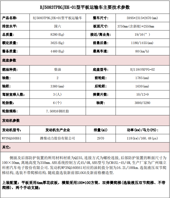 4、設計合理,采用工字鋼主梁,增加承載力及提高整車的穩(wěn)定性。