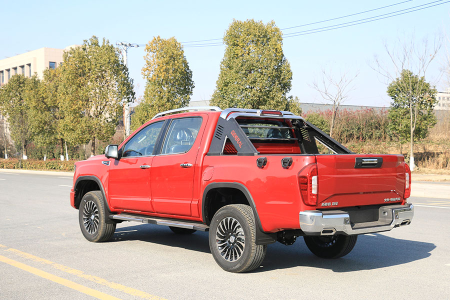 基礎(chǔ)配置:胎壓監(jiān)測(cè)、265/60R18鋁輪、雙氣囊、ABS+EBD、7寸彩屏儀表、無鑰匙進(jìn)入、一鍵啟動(dòng)、前盤后鼓、8寸MP5、定速巡航、剎車輔助、側(cè)踏板、發(fā)動(dòng)機(jī)防盜、T-BOX(2G)、亮鉻字母標(biāo)+黑色中網(wǎng)亮鉻邊框、噴漆前杠、B柱貼膜、車門裝飾板、小輪眉、鹵素大燈、日間行車燈、前霧燈、霧燈裝飾圈、電鍍外后視鏡(電動(dòng)調(diào)節(jié)、手動(dòng)折疊)帶LED轉(zhuǎn)向燈、后輪擋泥裙、電鍍門把手、護(hù)欄+繩鉤、LED高位制動(dòng)燈、噴涂貨箱寶、后保險(xiǎn)杠、針織頂棚、A柱扶手、內(nèi)后視鏡手動(dòng)防眩目、藍(lán)棕座椅、藍(lán)牙電話、第二排腳吹風(fēng)、前大燈延時(shí)關(guān)閉、有骨雨刷、機(jī)艙蓋氣動(dòng)撐桿、頂棚USB接口、4揚(yáng)聲器、倒車?yán)走_(dá)、普通三點(diǎn)式安全帶、行李架、車內(nèi)氛圍燈、智能享受套裝(主駕電動(dòng)6向調(diào)節(jié)帶前排加熱+兒童座椅固定點(diǎn)+后排座椅3頭枕+第二排中央扶手+主駕一鍵升帶防夾+自動(dòng)空調(diào)+外后視鏡加熱+后風(fēng)窗除霜)