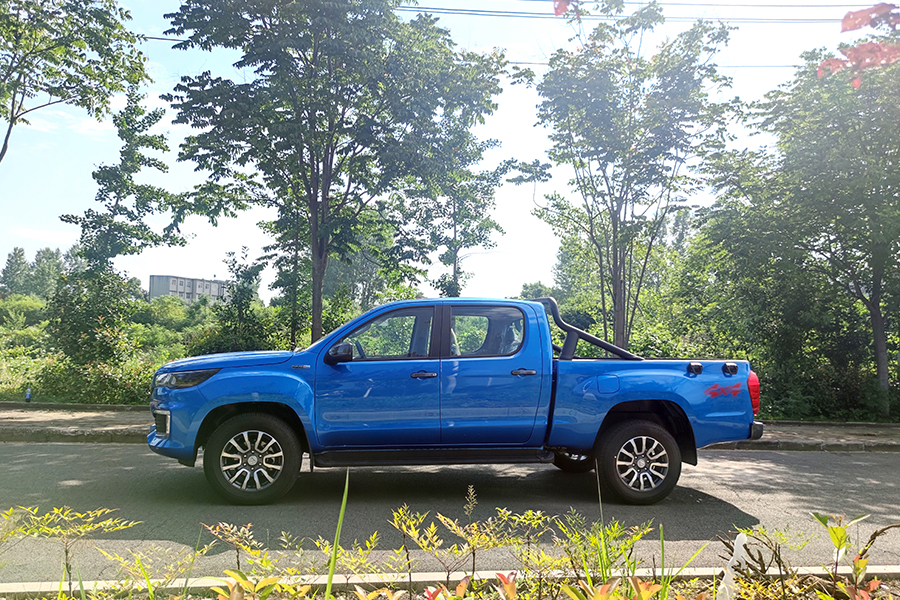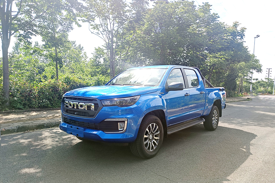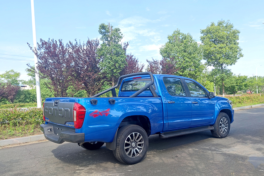 福田高端皮卡馭途9,(樂享型),歐康2.0T柴油發(fā)動機,120KW,最大扭矩390,6擋手動變速箱,3400軸距,貨箱尺寸1805*1580*440。整車型號7Y3MAV-6L,其它配置熏黑鹵素大燈、265/60R18輪胎、鋁合金輪輞、仿皮座椅、ABS+EBD、前盤后鼓、前排普通三點式安全帶、后排中間兩點式兩邊三點式安全帶、LED日間行車燈、前霧燈、大燈延時關閉、側(cè)踏板、護欄、外繩鉤、貨箱寶、內(nèi)后視鏡手動防眩目、A柱扶手、點陣屏儀表、仿皮多功能方向盤、主駕座椅手動6向調(diào)節(jié)、副駕座椅手動4向調(diào)節(jié)、雙氣囊、剎車輔助、倒車雷達、發(fā)動機防盜、T-BOX(2G)、定速巡航、8寸MP5、倒車影像、藍牙電話、電動空調(diào)、一鍵啟動、機艙蓋氣動撐桿、4揚聲器、后保險杠。
