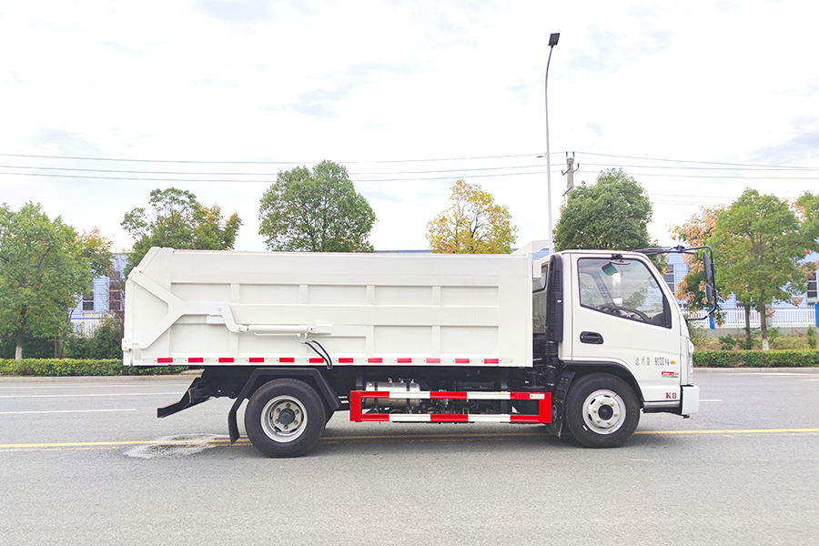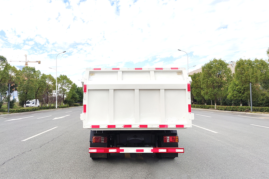 方形箱體,優質碳鋼制作,箱體底板4mm,邊板3mm,箱體選裝翼展蓋,液壓開啟,箱體后門剪刀式液壓開啟,后門帶密封條,國產油缸,國產多路閥;合肥液壓油泵,舉升油缸帶限位裝置,駕駛室電控操作,中置雙頂。