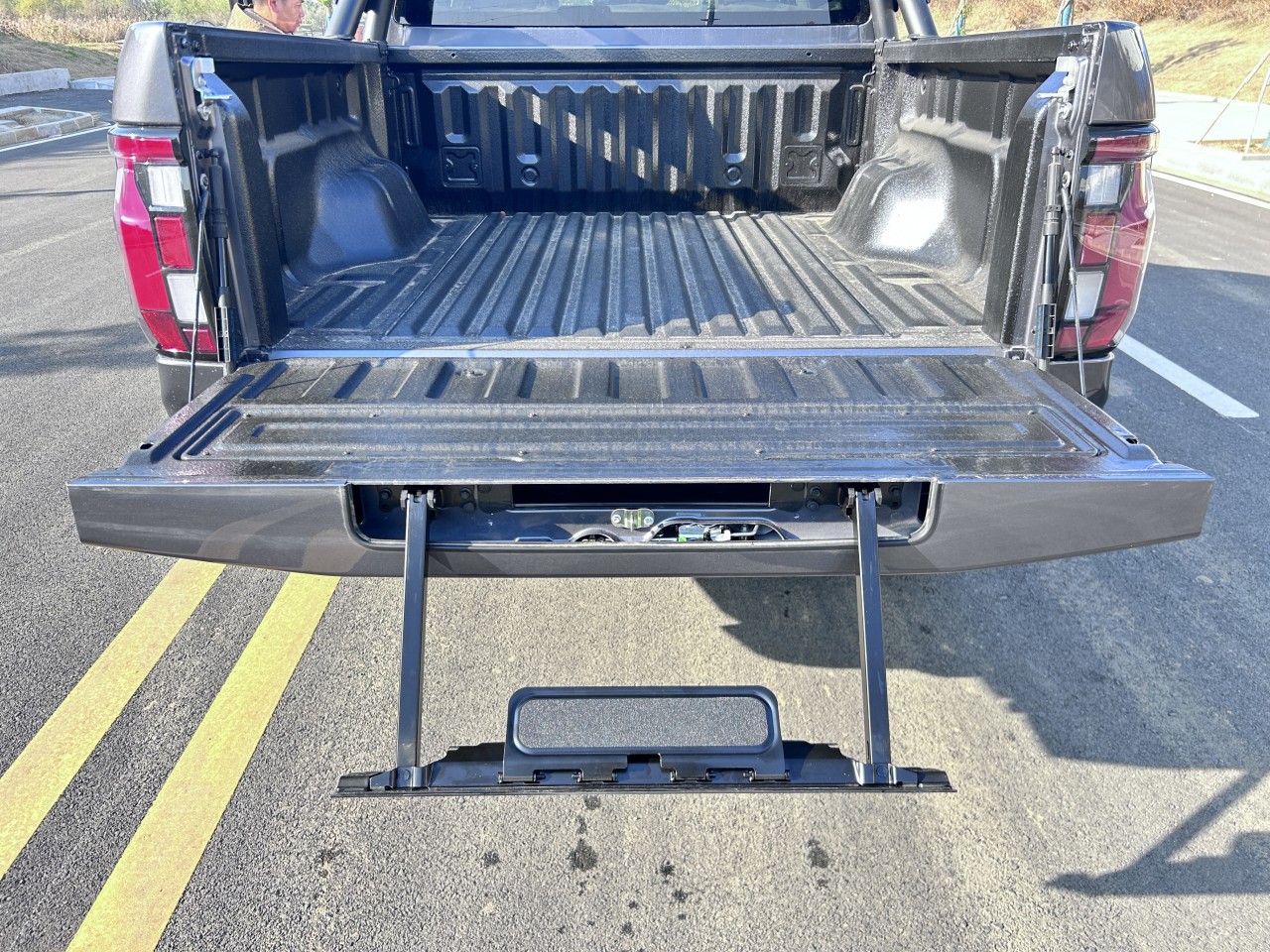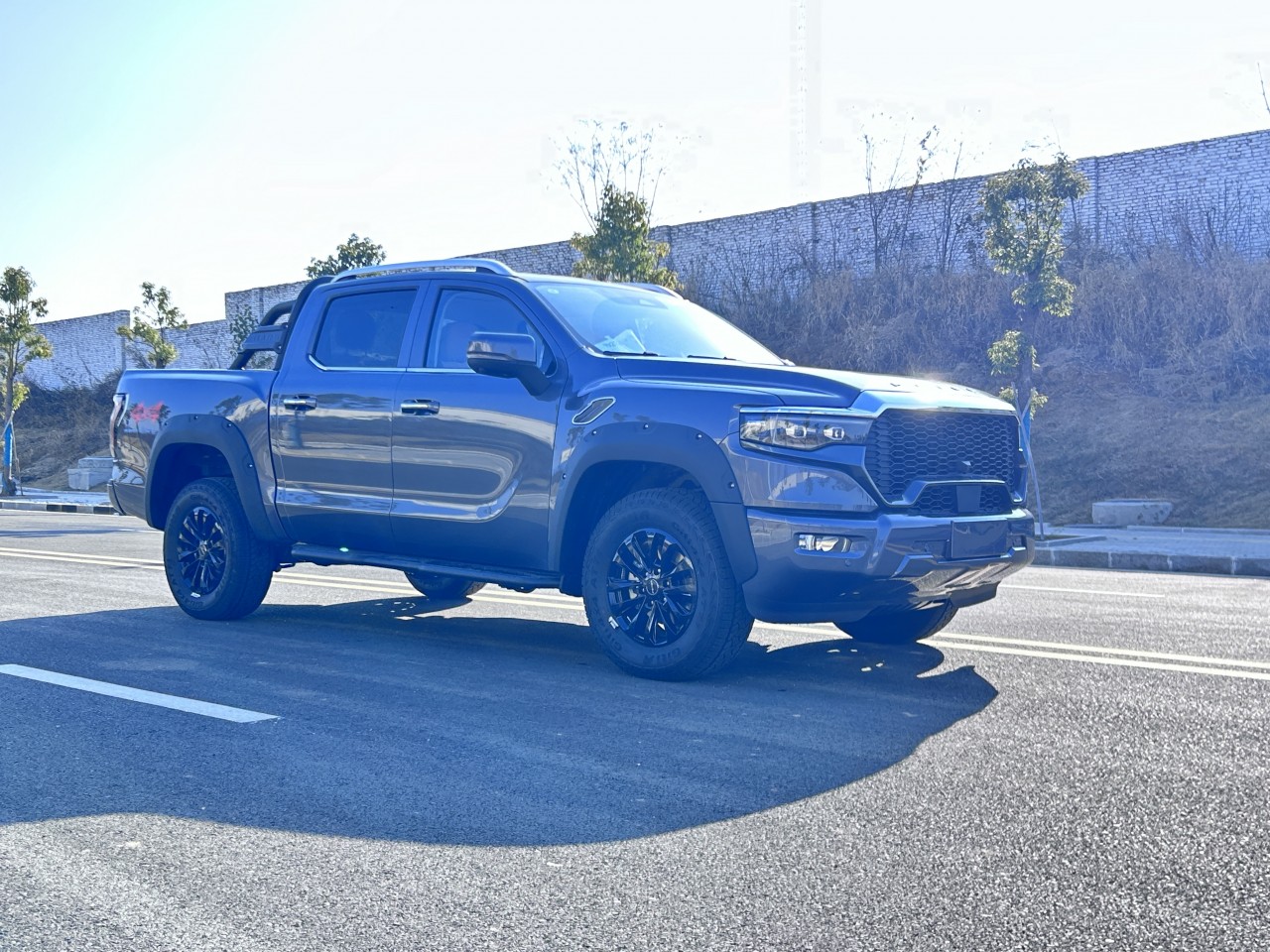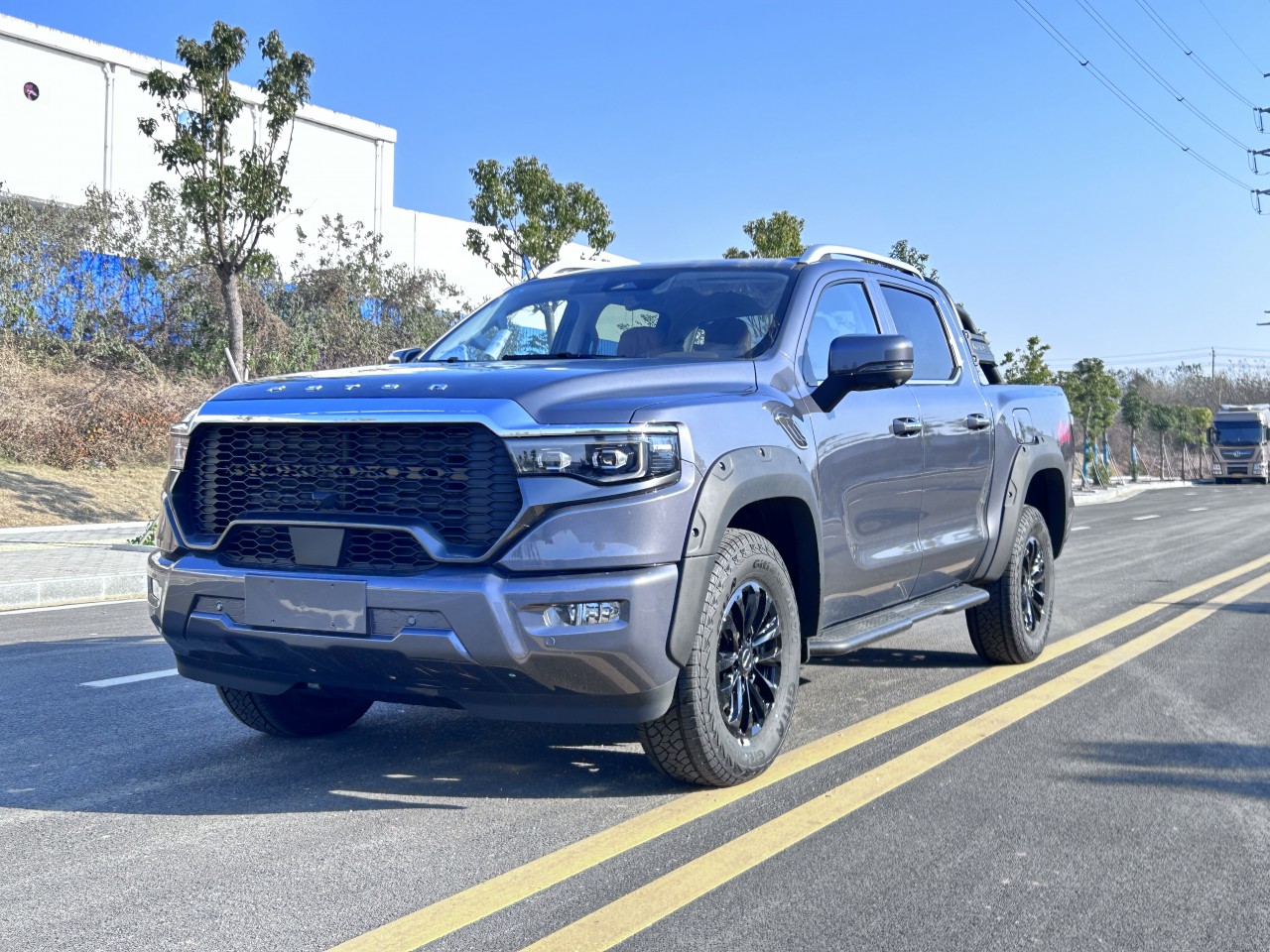 ★全尺寸硬派造型 ① 近2.1m超寬車身、1.65m貨箱、1.7m輪距 ② 整車方正硬朗設(shè)計 ③ 帶燈語LED矩陣大燈 ④ 貫穿式帶燈語LED尾燈 ⑤ 3D雕刻尾門裝飾板 ⑥ 大尺寸越野輪眉+車頂行李架 ⑦ 265/70R18大尺寸全地形越野胎 ⑧ 一體式門把手+觸摸感應(yīng)解鎖 ⑨ 尾門液壓緩降 ⑩ 伸縮式蹬車踏步 ? 主動進氣格柵(行業(yè)首用) ? 多種個性化車身顏色